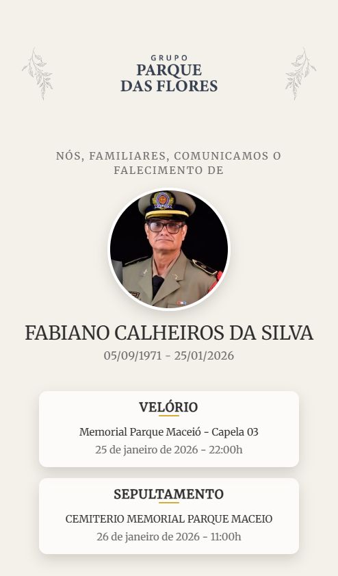 É com profundo pesar que lamentamos o falecimento do Subtenente Fabiano Calheiros da Silva, ocorrido neste domingo (25)
